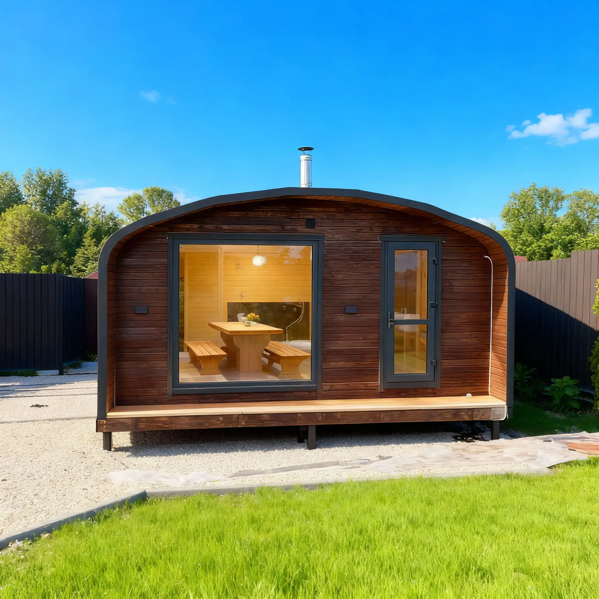 Представьте: вы пьете чай после парения и смотрите на свой сад. Окно с двухкамерным стеклопакетом и тонировкой сохранит тепло и приватность, добавив уюта.