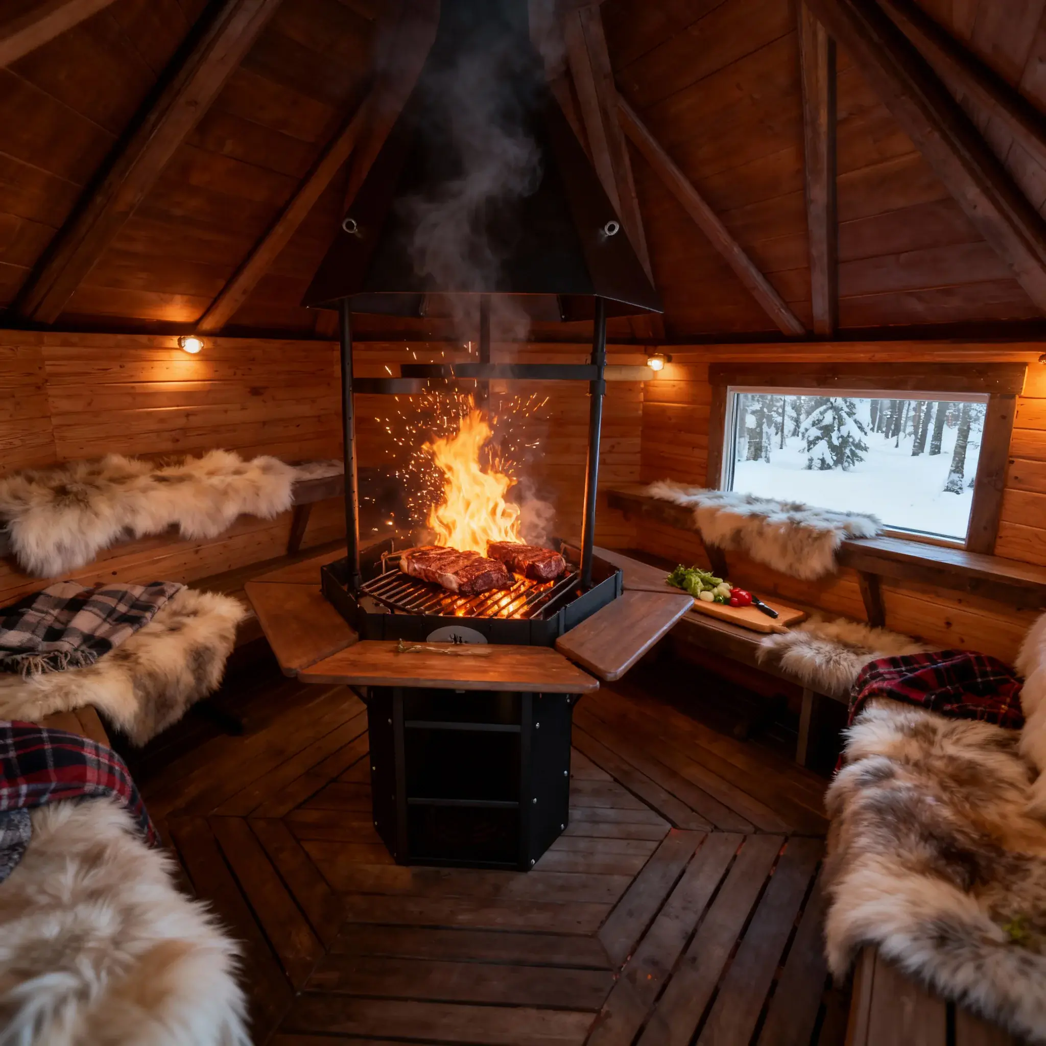 Топка внутри парной. Классика жанра: вы подкидываете дрова, не отрываясь от процедур, и наблюдаете за игрой огня через стекло печи прямо в парилке.