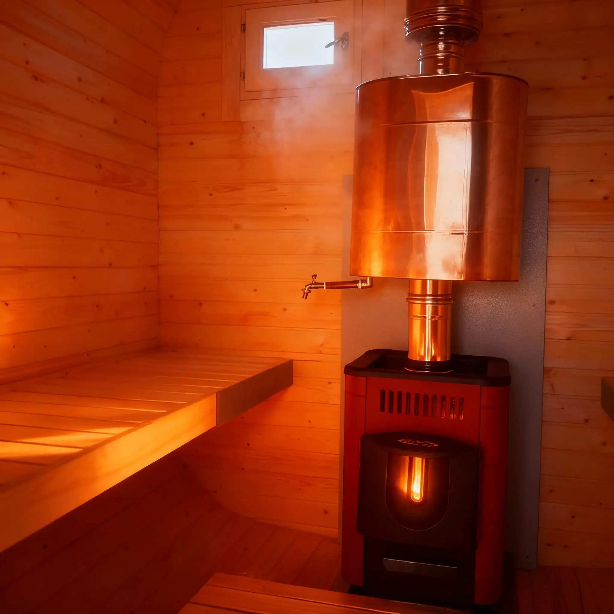 Топка внутри парной. Классика жанра: вы подкидываете дрова, не отрываясь от процедур, и наблюдаете за игрой огня через стекло печи прямо в парилке.