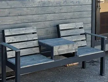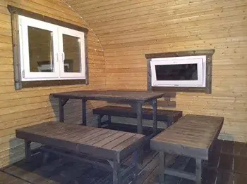 - Мебель в комнате отдыха: стол и лавки