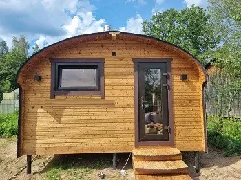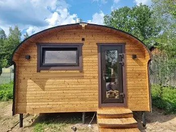 Идеальный вариант, если к месту установки может подъехать грузовая машина, а ширина бани не превышает 2.5 метра. Мы привезем уже собранную баню и установим её за 1 час.