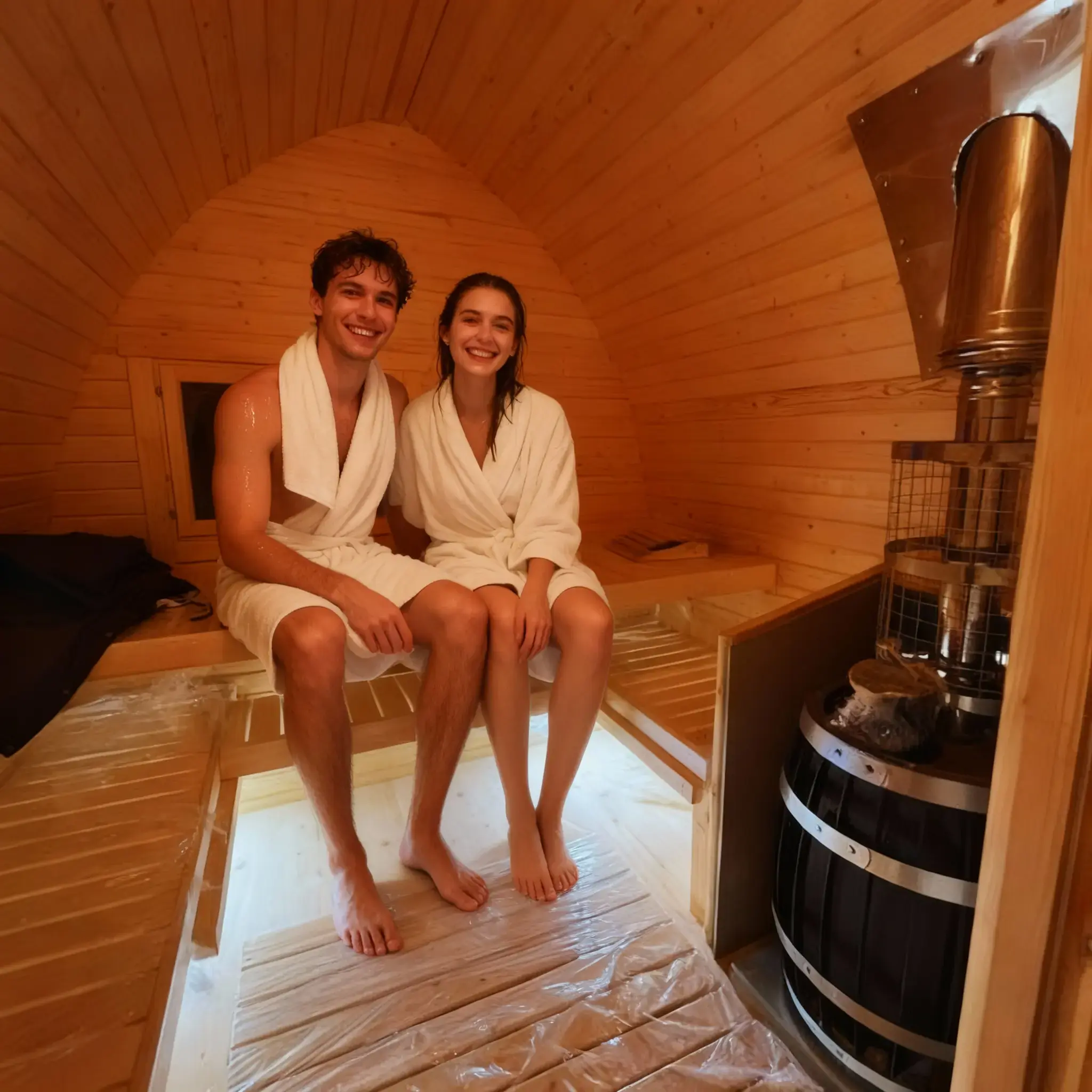 Топка внутри парной. Классика жанра: вы подкидываете дрова, не отрываясь от процедур, и наблюдаете за игрой огня через стекло печи прямо в парилке.