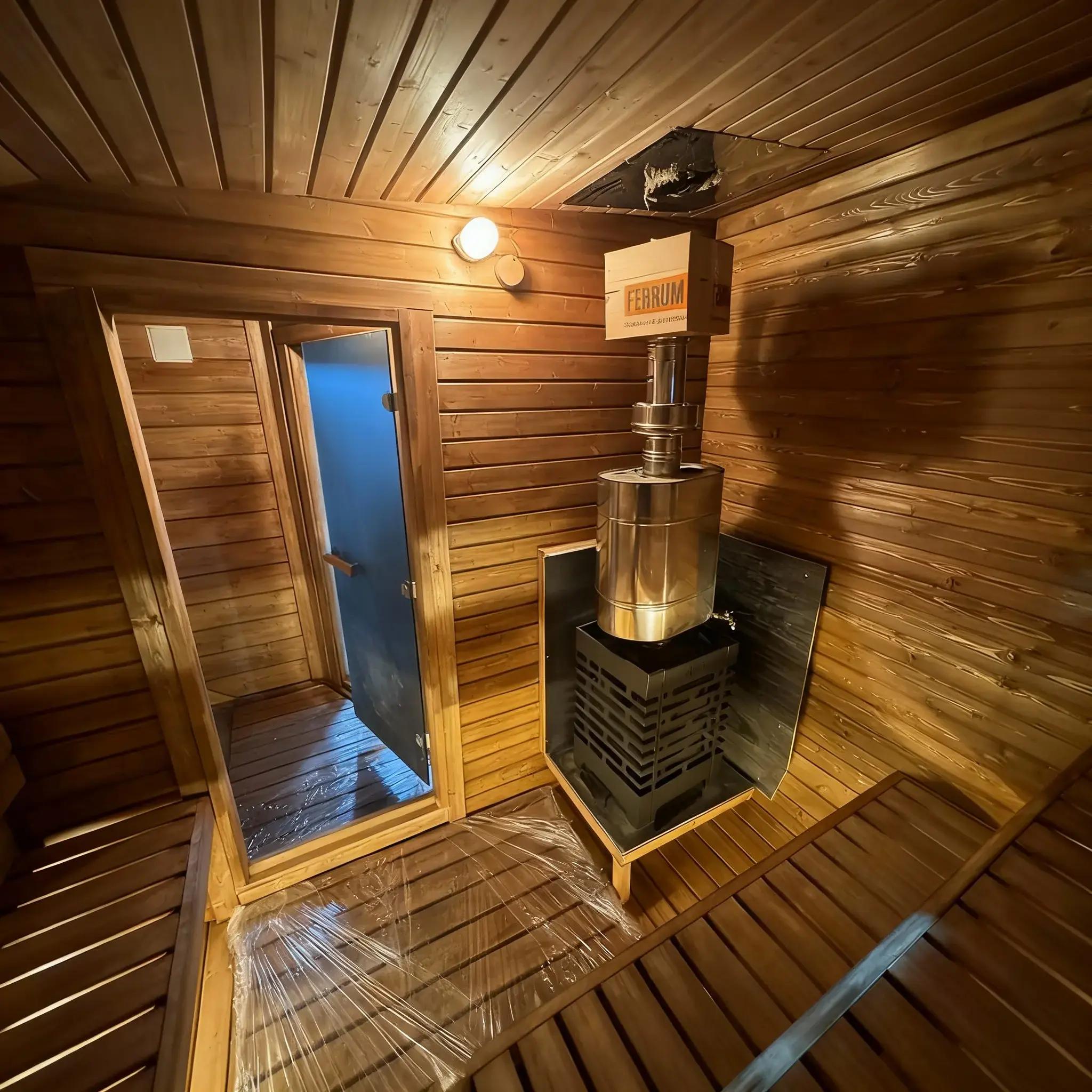 Топка внутри парной. Классика жанра: вы подкидываете дрова, не отрываясь от процедур, и наблюдаете за игрой огня через стекло печи прямо в парилке.